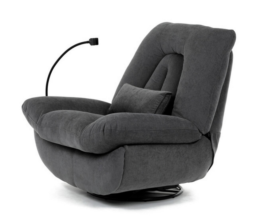 Polohovací elektrické křeslo TV-7081 GREY2 nabízí 2 samostatné motory, otočení až 240°, houpání 30°, USB-A a USB-C, úložný box, držák telefonu, ergonomické opěradlo s polštářkem a nosnost 160 kg.