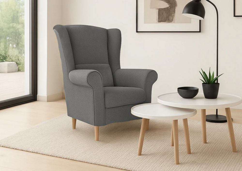 Křeslo ušák Lot od RV-nábytek v elegantním provedení Avra 17 tmavě šedá přináší do interiéru svěžest, styl a výjimečný komfort. Výrazná tmavě šedá látka rozzáří každý prostor a dodá mu osobitý charakter, zatímco dřevěné nohy v přírodním odstínu podtrhují jeho nadčasový design.