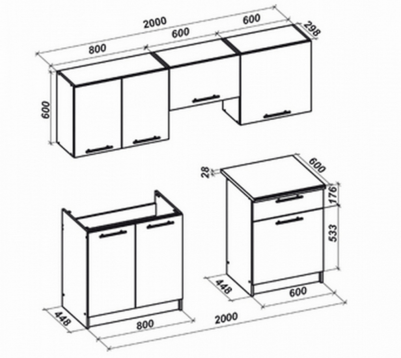 kuchyňská linka rea 200 cm vicenza 72 cm + pracovní deska | moderní design