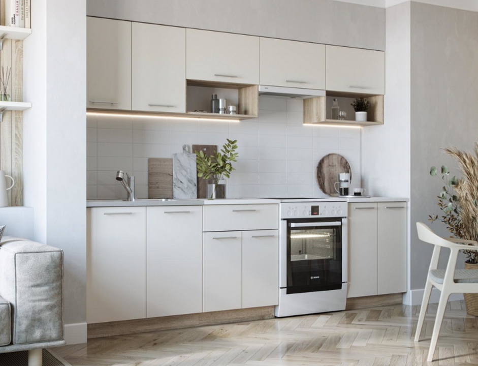 Elegantní kuchyň REA 200 cm v barvě bílá s variabilními skříňkami.