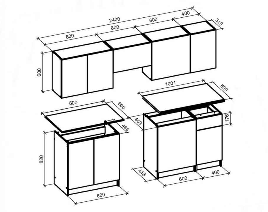 Pracovní deska o rozměru 100+80cm je v ceně kuchyně.