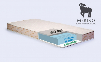 - zimní strana: ovčí vlna MERINO - má vynikající termoregulační a hydroskopické vlastnost Přizpůsobí se tělesné teplotě člověka a nedochází tak k nadměrnému pocení nebo naopak prochladnutí během spánku. Je extrémně prodyšná , čímž zaručuje optimální cirkulaci vzduchu a tělo může dýchat celou pokožkou. Jednoduše se udržuje díky vysoké biologické samočisticí síle ovčí vlny.
