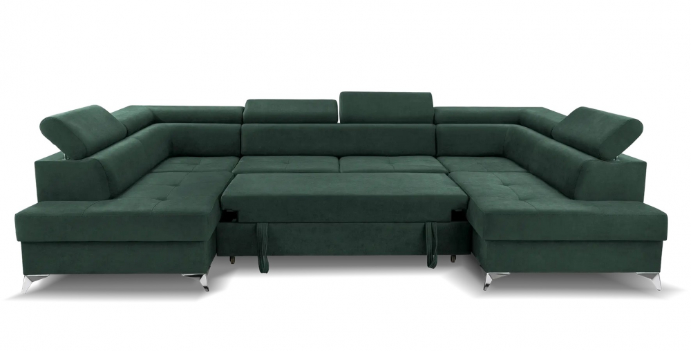 Sedací souprava Mary U od rv-nábytek, rozkládací sedací souprava s úložným prostorem. Potah Vena 04 zelená, výplň PUR pěna a pružina Falista, výška sedu 45 cm, hloubka sedu 56 cm.
