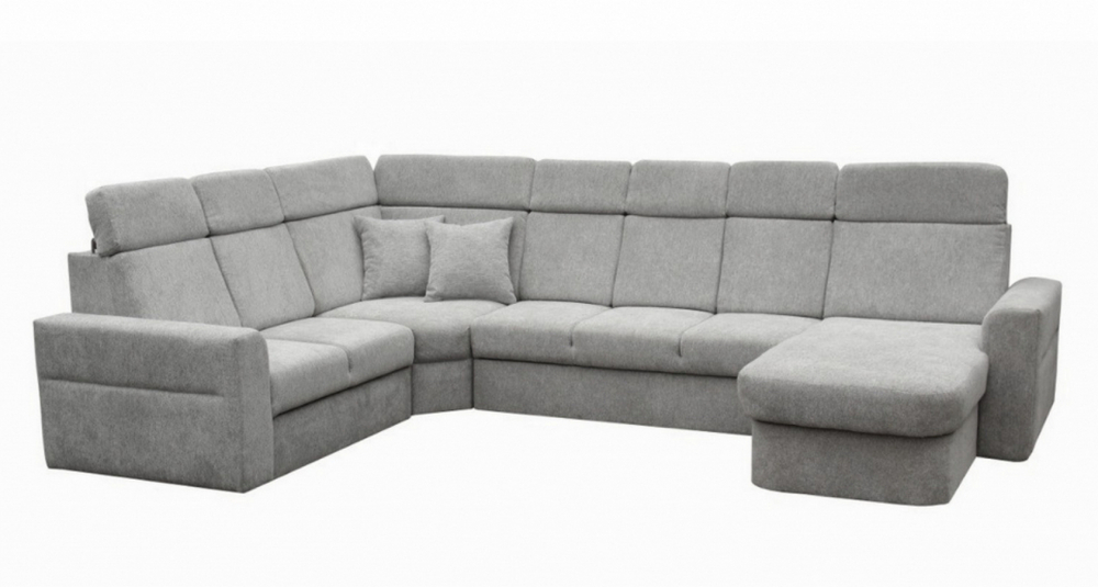 Sedací souprava Pablo U od rv-nábytek, rozkládací sedací souprava s úložným prostorem. Potah Diosa 84 světle šedá, výplň PUR pěna a pružina Falista a Bonell, výška sedu 48 cm, hloubka sedu 48 cm.