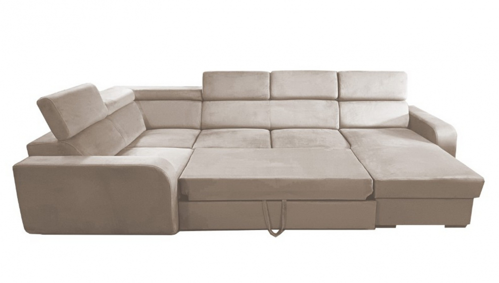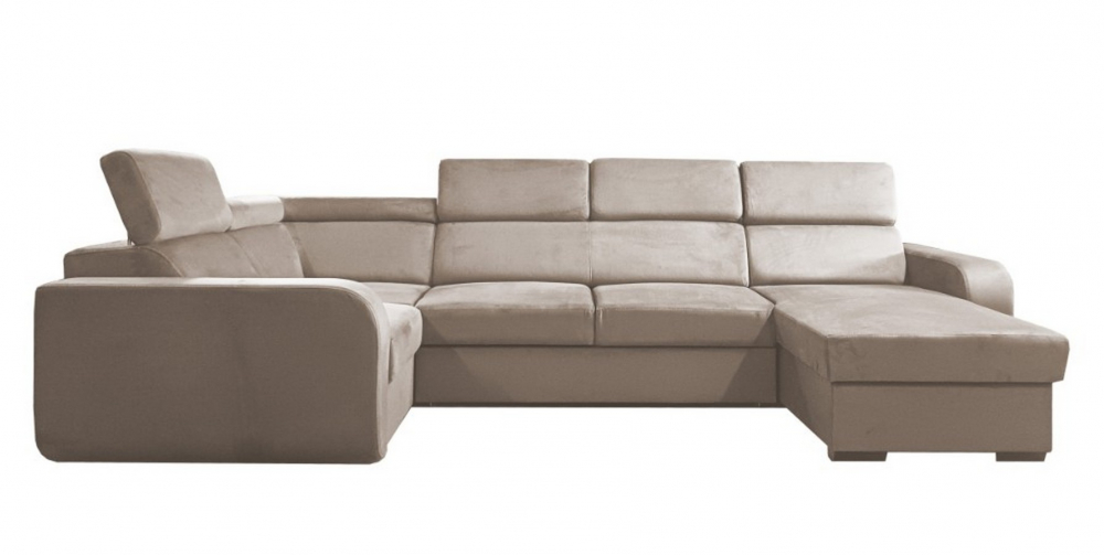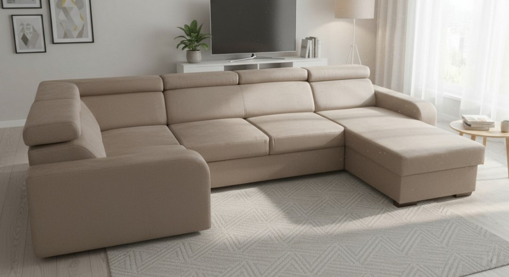 Sedací souprava Eliza U od rv-nábytek, rozkládací sedací souprava s úložným prostorem. Potah Manila 02 béžová, výplň PUR pěna a pružina Falista, výška sedu 43 cm, hloubka sedu 56 cm.