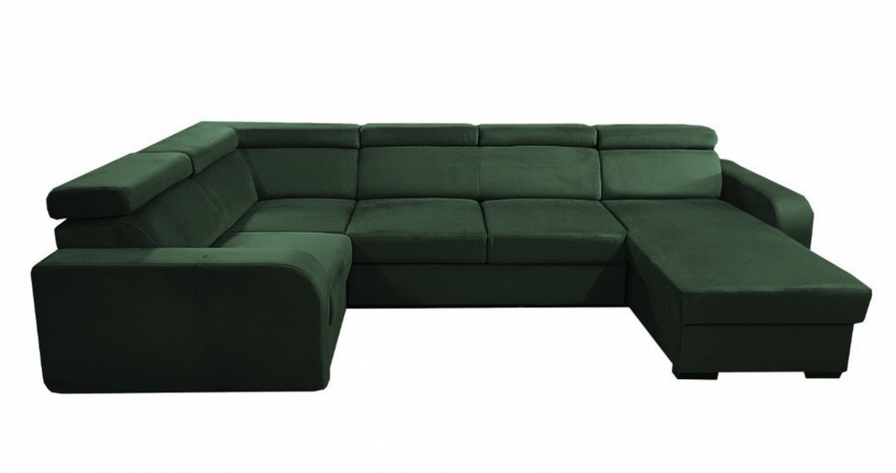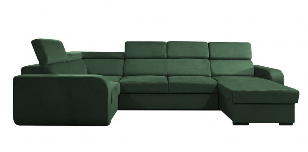 Sedací souprava Eliza U od rv-nábytek, rozkládací sedací souprava s úložným prostorem. Potah Manila 35 zelená, výplň PUR pěna a pružina Falista, výška sedu 43 cm, hloubka sedu 56 cm.