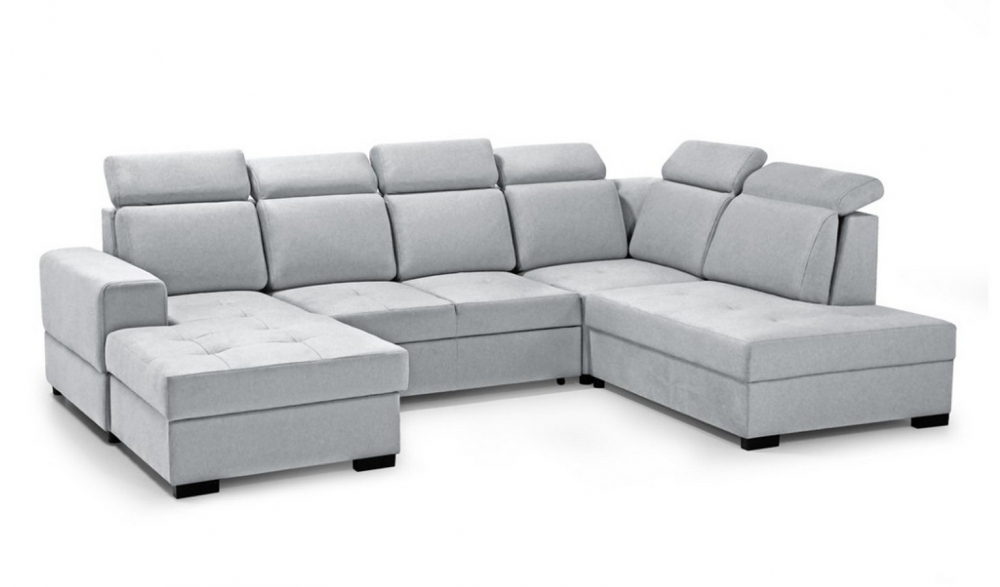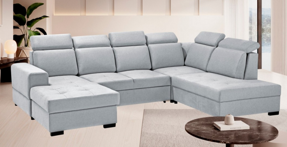 Sedací souprava Amanda U od rv-nábytek, rozkládací sedací souprava s úložným prostorem. Potah Castel 82 světle šedá, výplň PUR pěna a pružina Falista, výška sedu 43 cm, hloubka sedu 55 cm.
