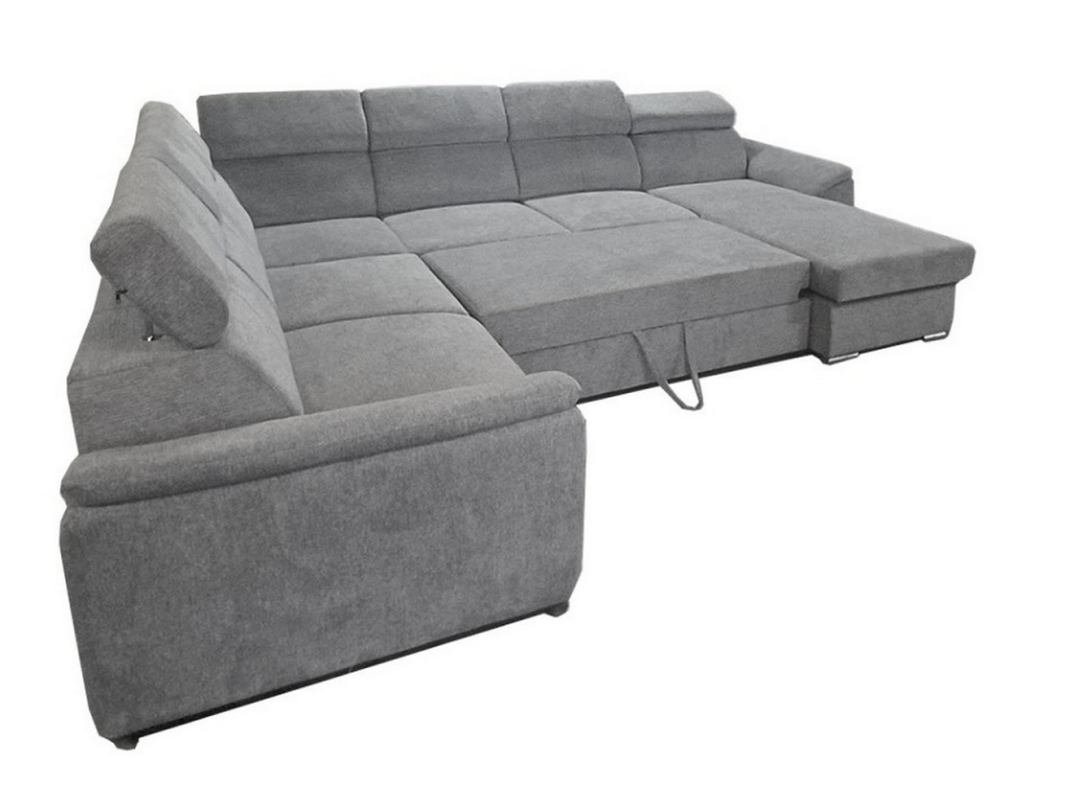 Sedací souprava Kareta U od rv-nábytek, rozkládací sedací souprava s úložným prostorem. Potah Aragon 90 šedá, výplň PUR pěna a pružina Falista, výška sedu 43 cm, hloubka sedu 56 cm.