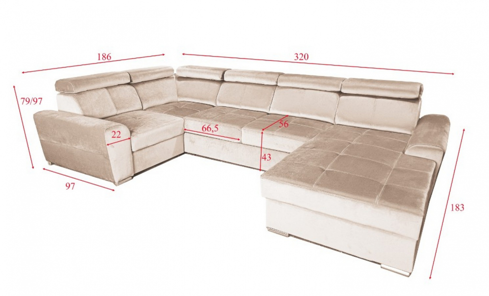 | Rozměr ( š / v / h )cm | 320x79x183(186)cm |