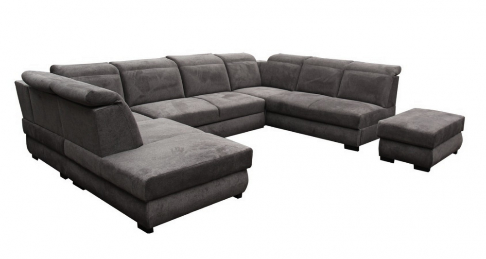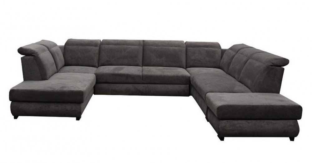 Sedací souprava Iris U od rv-nábytek, rozkládací sedací souprava s úložným prostorem. Potah Aragon 97 grafitová, výplň PUR pěna a pružina Falista, výška sedu 43 cm, hloubka sedu 60 cm.