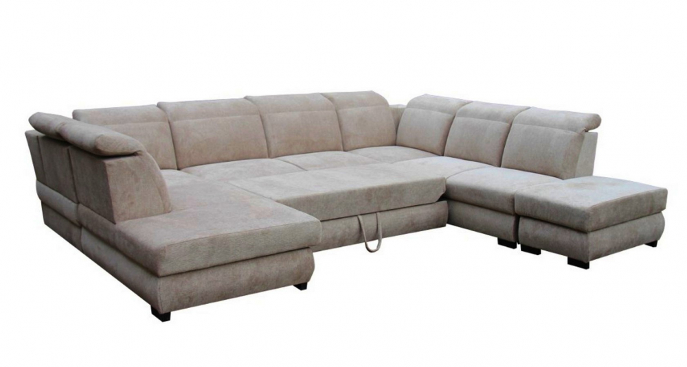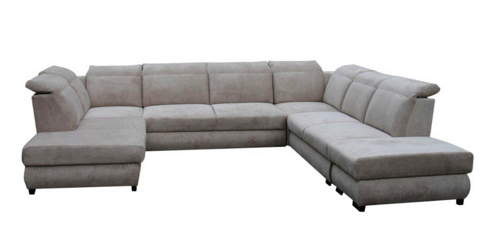 Sedací souprava Iris U od rv-nábytek, rozkládací sedací souprava s úložným prostorem. Potah Aragon 20 světle hnědá, výplň PUR pěna a pružina Falista, výška sedu 43 cm, hloubka sedu 60 cm.