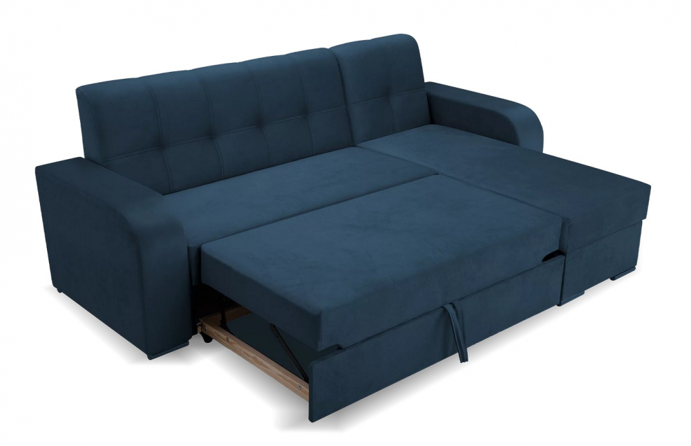 Sedací souprava Id-Orco od rv-nábytek, rozkládací sedací souprava s úložným prostorem. Potah Monolith 77 modrá, výplň PUR pěna a pružina Bonell a Falista, výška sedu 45 cm, hloubka sedu 60 cm.