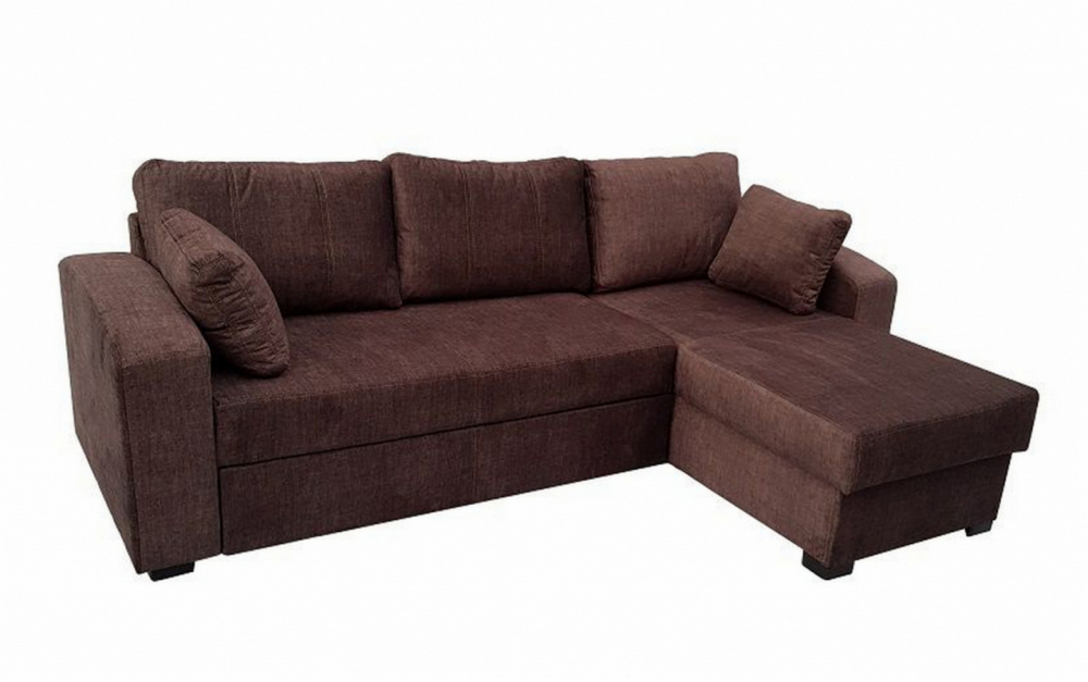Sedací souprava Torez od rv-nábytek, rozkládací sedací souprava s úložným prostorem. Potah Mars 03 hnědá, výplň PUR pěna a pružina Falista, výška sedu 48 cm, hloubka sedu 50-68 cm.