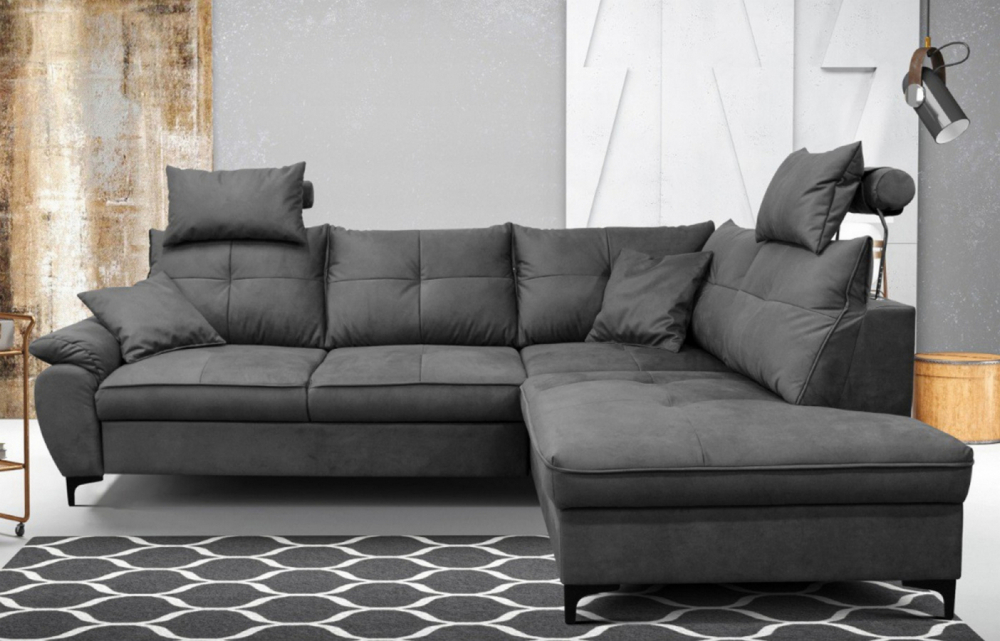 Sedací souprava Salvator od rv-nábytek, rozkládací sedací souprava s úložným prostorem. Potah Letto 93 šedá, výplň PUR pěna a pružina Falista, výška sedu 44 cm, hloubka sedu 60 cm.