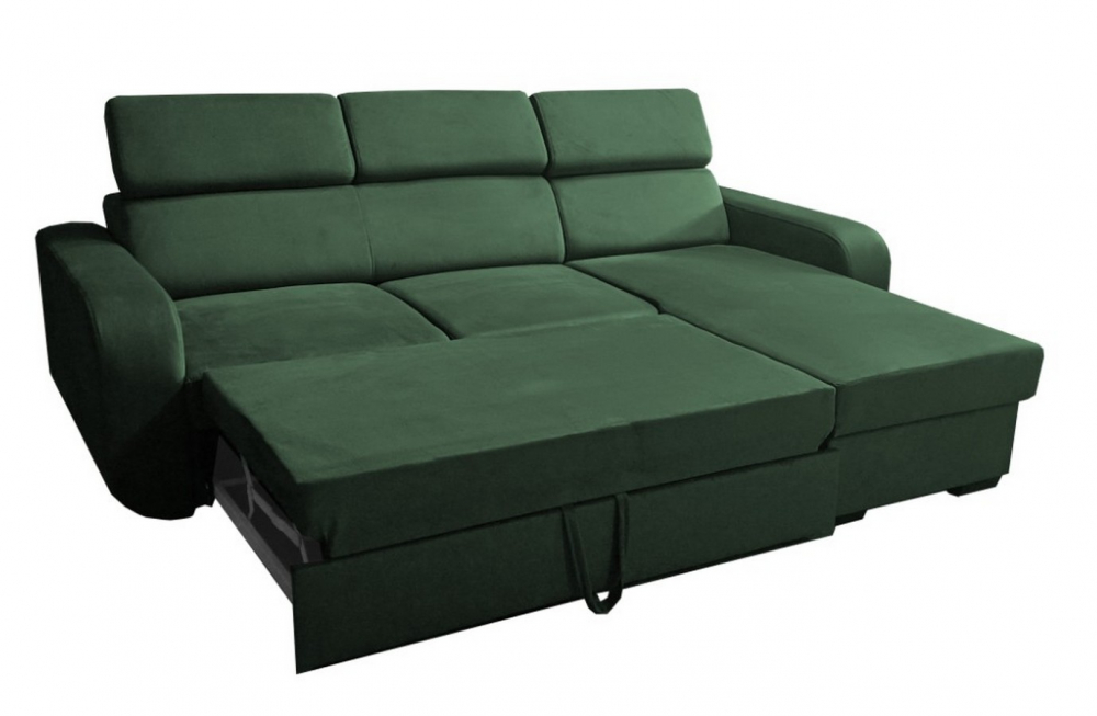 Sedací souprava Eliza od rv-nábytek, rozkládací sedací souprava s úložným prostorem. Potah Manila 35 zelená, výplň PUR pěna a pružina Falista, výška sedu 43 cm, hloubka sedu 56 cm.