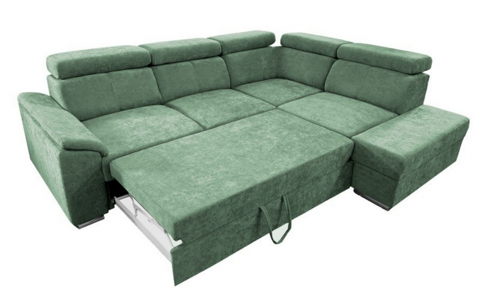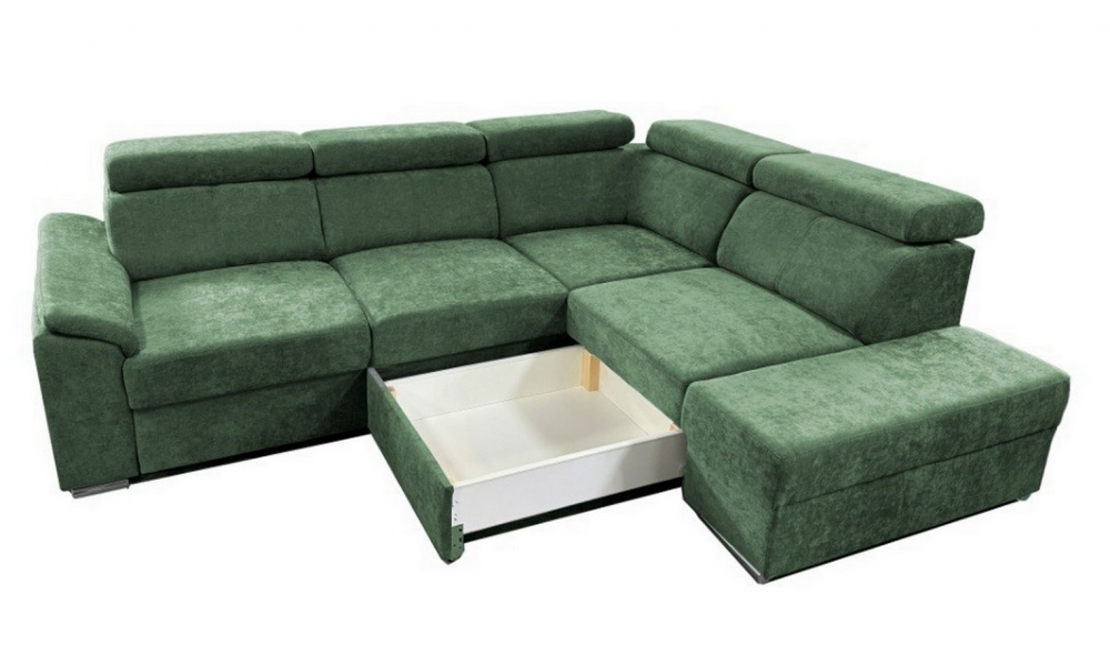 Sedací souprava Domino od rv-nábytek, rozkládací sedací souprava s úložným prostorem. Potah Wind 34 zelená, výplň PUR pěna a pružina Falista, výška sedu 43 cm, hloubka sedu 56 cm.