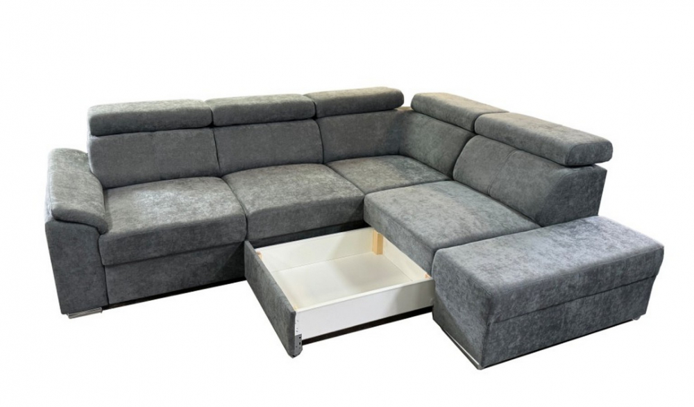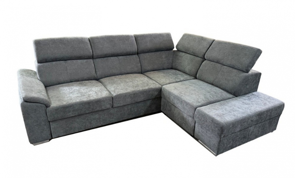 Sedací souprava Domino od rv-nábytek, rozkládací sedací souprava s úložným prostorem. Potah Wind 88 šedá, výplň PUR pěna a pružina Falista, výška sedu 43 cm, hloubka sedu 56 cm.