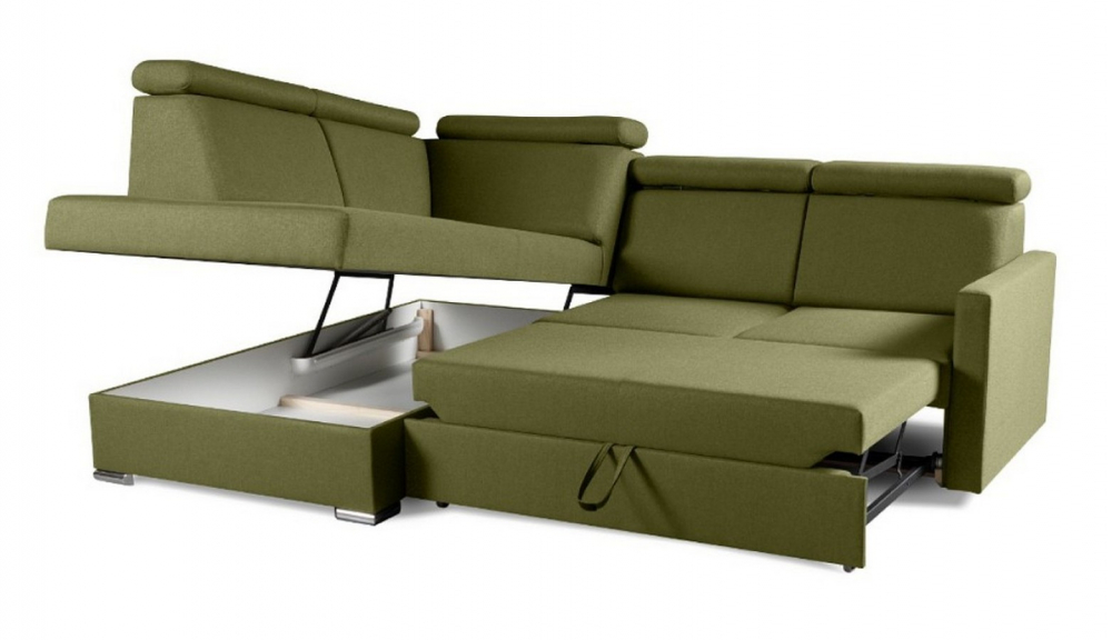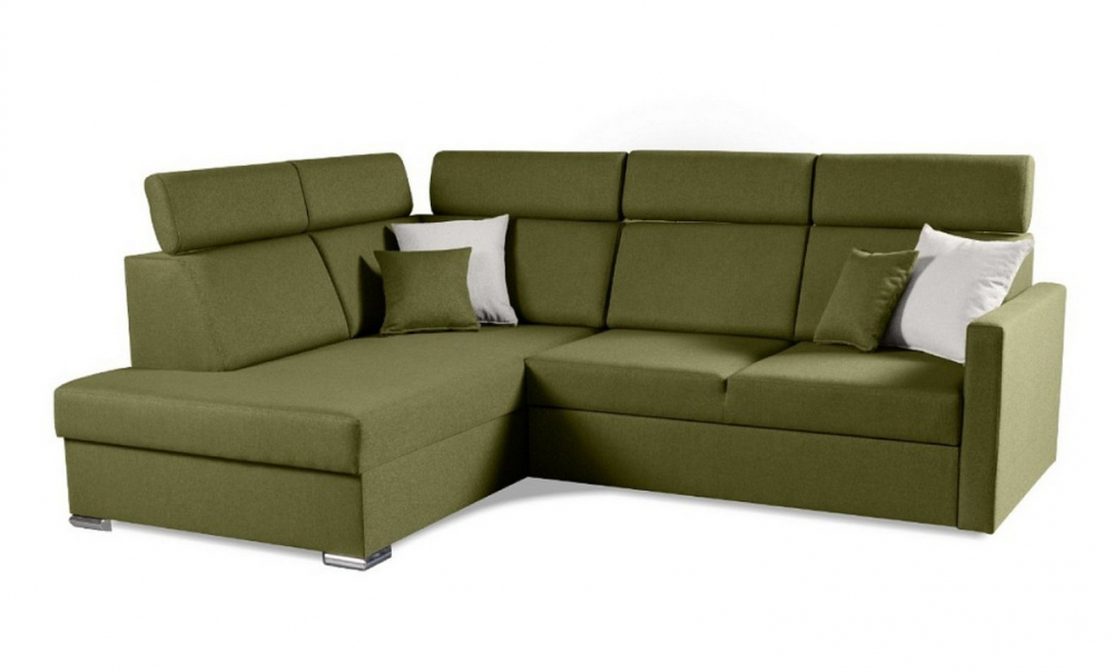 Sedací souprava Santorini XL od rv-nábytek, rozkládací sedací souprava s úložným prostorem. Potah Wind 34 olivová, výplň PUR pěna a pružina Falista, výška sedu 43 cm, hloubka sedu 54 cm.