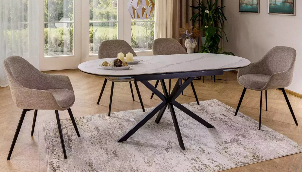 Jídelní stůl Gaston rozkládací je perfektní volbou pro ty, kteří hledají moderní rozkládací jídelní stůl v dekoru bílá mramor, který spojuje styl, praktičnost a dostatek místa pro pohodlné stolování.