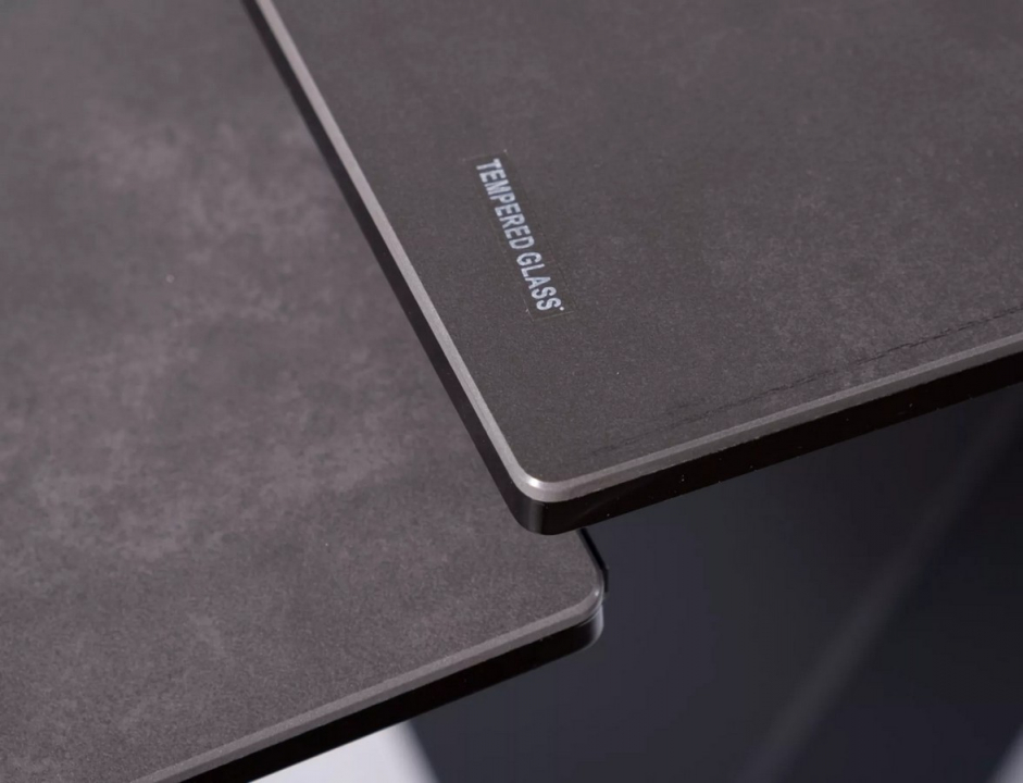 Deska stolu je vyrobena z kvalitní keramiky v dekoru šedý mramor, která působí luxusně, elegantně a zároveň je mimořádně praktická pro každodenní používání. Keramický povrch je odolný, snadno udržovatelný a vhodný pro moderní domácnosti. Stabilní nohy v černém matném provedení podtrhují moderní charakter stolu a zajišťují pevnost i vysokou stabilitu.